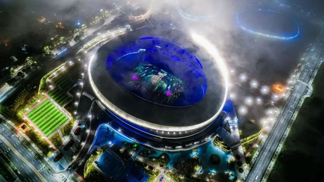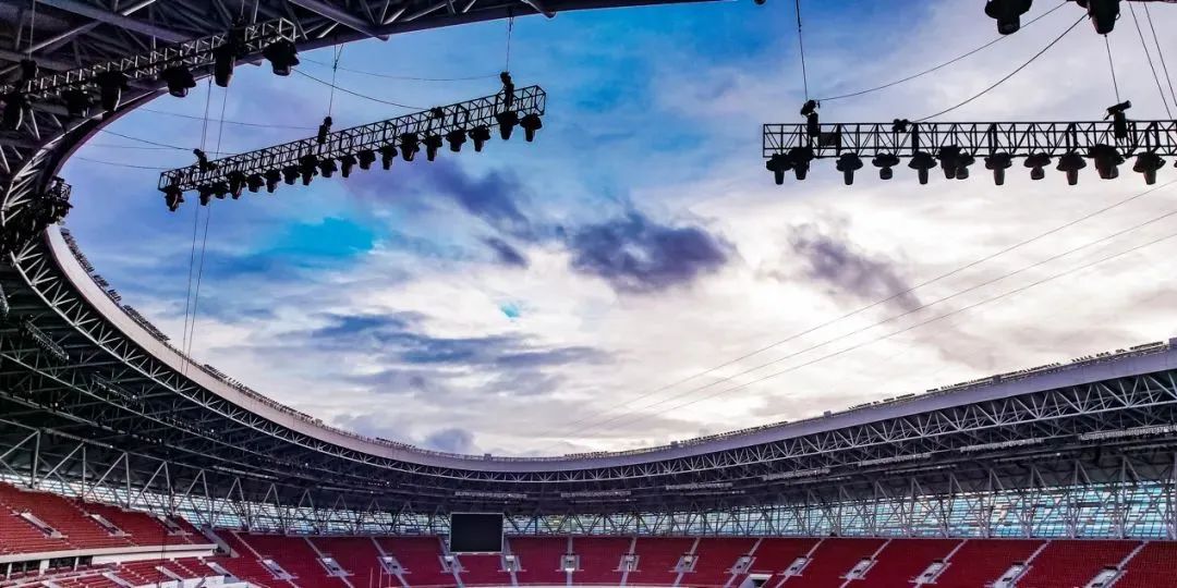 同时在体育场顶棚还吊装了两圈各类专业级灯光,以达到渲染现场气氛,增强视觉冲击力、丰富空间造型的目的。