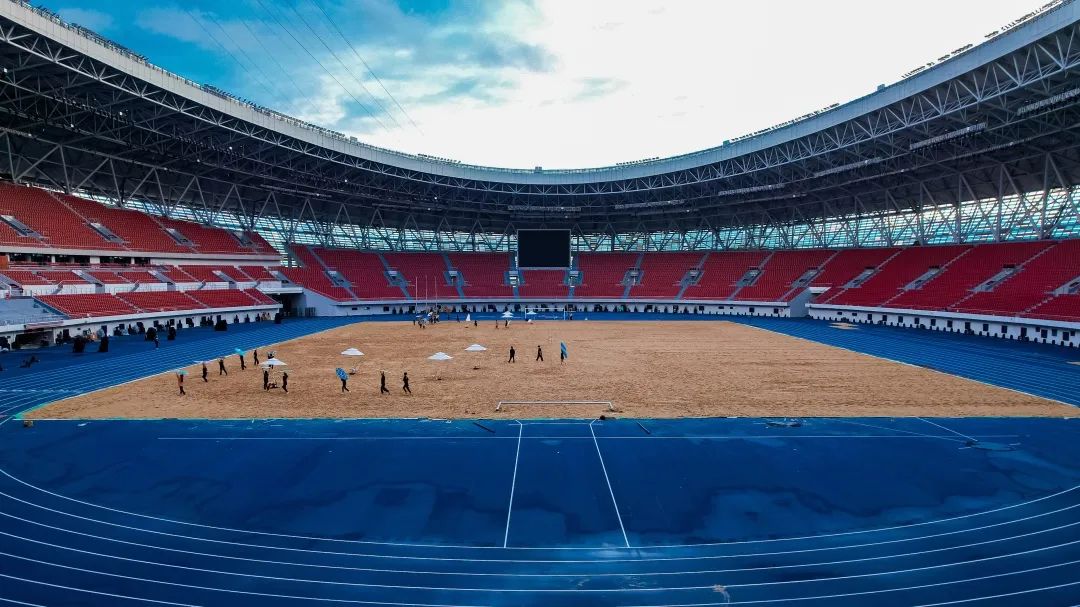 目前,备受关注的省运会开幕式,已经在儋州体育中心内完成所有灯光的架设和调试,唯美的投影、精准的灯光将夜色中的体育场装点得时尚而浪漫。