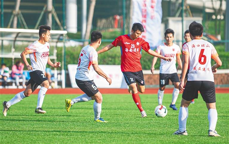 图为2020年海南省青少年足球赛总决赛现场。袁琛 摄