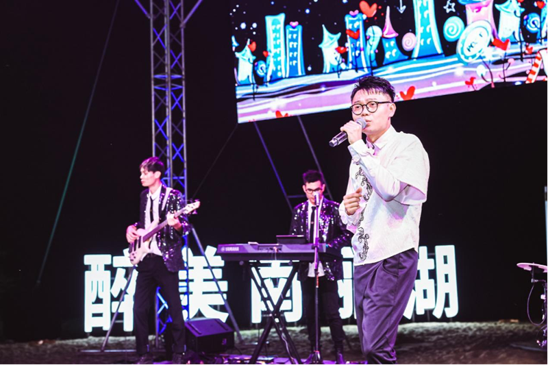 夜幕降临,在中铁诺德丽湖半岛沙滩码头,星空音乐沙滩派对同步带给现场观众朋友一个美好的夜晚。菠萝乐队为现场观众演唱了《拯救》《离开地球表面》《奔跑》等多首欢快律动的歌曲。有奖游戏环节穿插其中,众多别具一格的热门网红市集摊位亮相,定安特色仙沟牛肉、烧烤啤酒让观众大快朵颐。现场氛围热烈,观众载歌载舞,尽情释放着内心激情与青春活力,派对以美丽南丽湖畔的沙滩营地为依托,集中展示了定安美丽的自然风光和浓厚的人文气息。