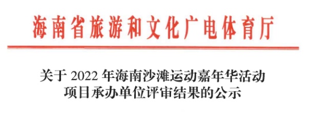 关于2022年海南沙滩运动嘉年华活动项目承办单位评审结果的公示