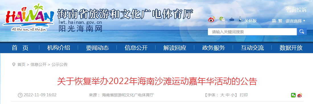 关于恢复举办2022年海南沙滩运动嘉年华活动的公告